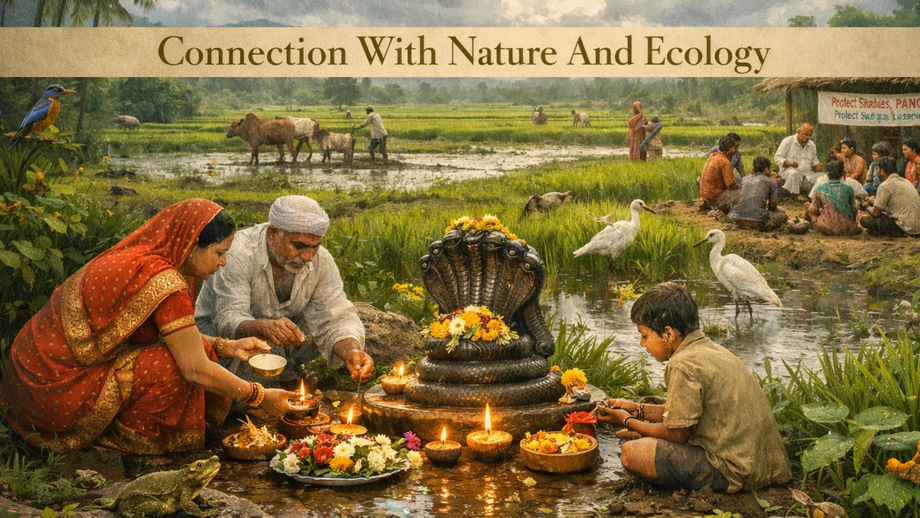 During the monsoon season, snakes often emerge from flooded habitats, increasing human encounters. Worship traditions likely evolved as a way to encourage peaceful coexistence. By honouring these creatures, people are reminded not to harm them unnecessarily. Modern environmentalists sometimes use this festival as an opportunity to spread awareness about wildlife conservation. Educational campaigns highlight the importance of protecting natural habitats and respecting biodiversity.